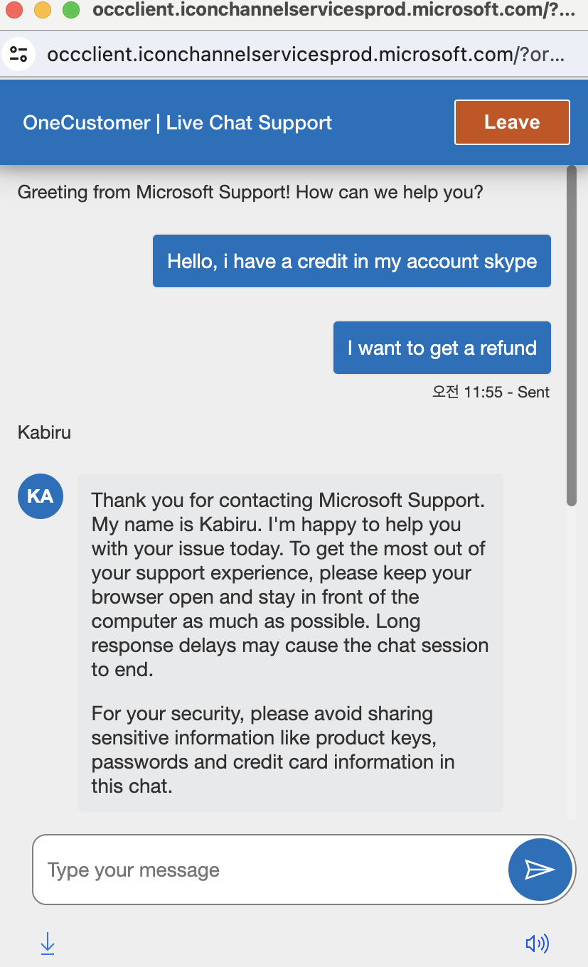 아래 링크까지 눌렀더니 채팅이 연결됐다.