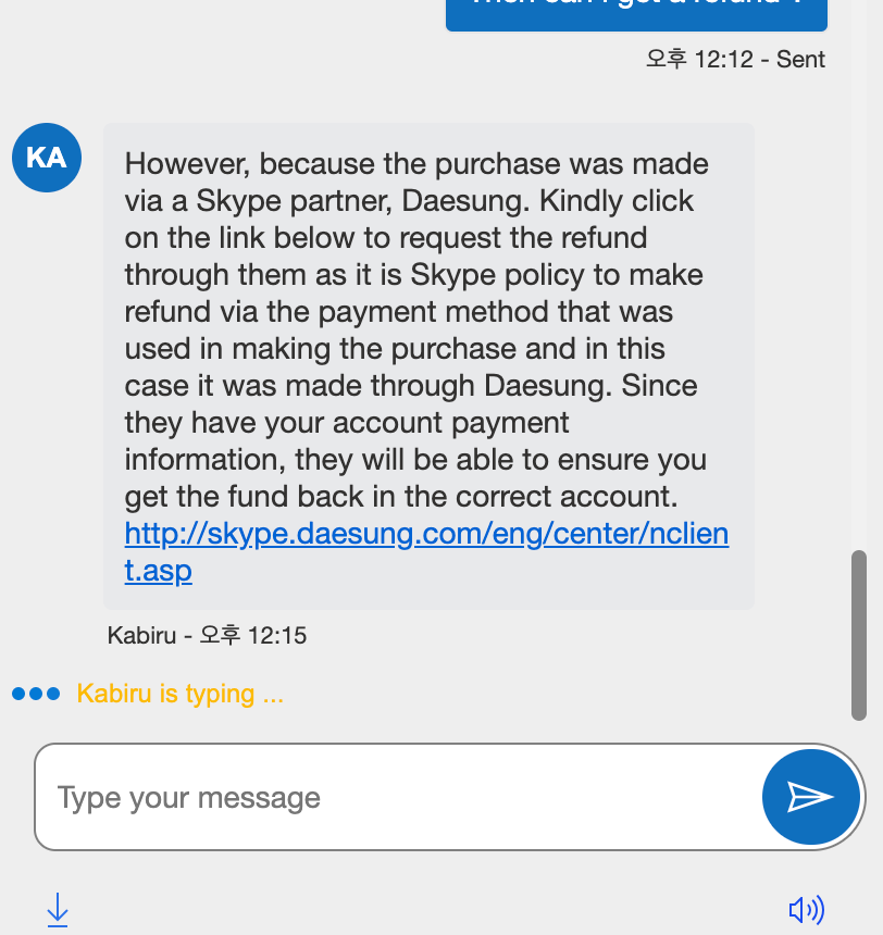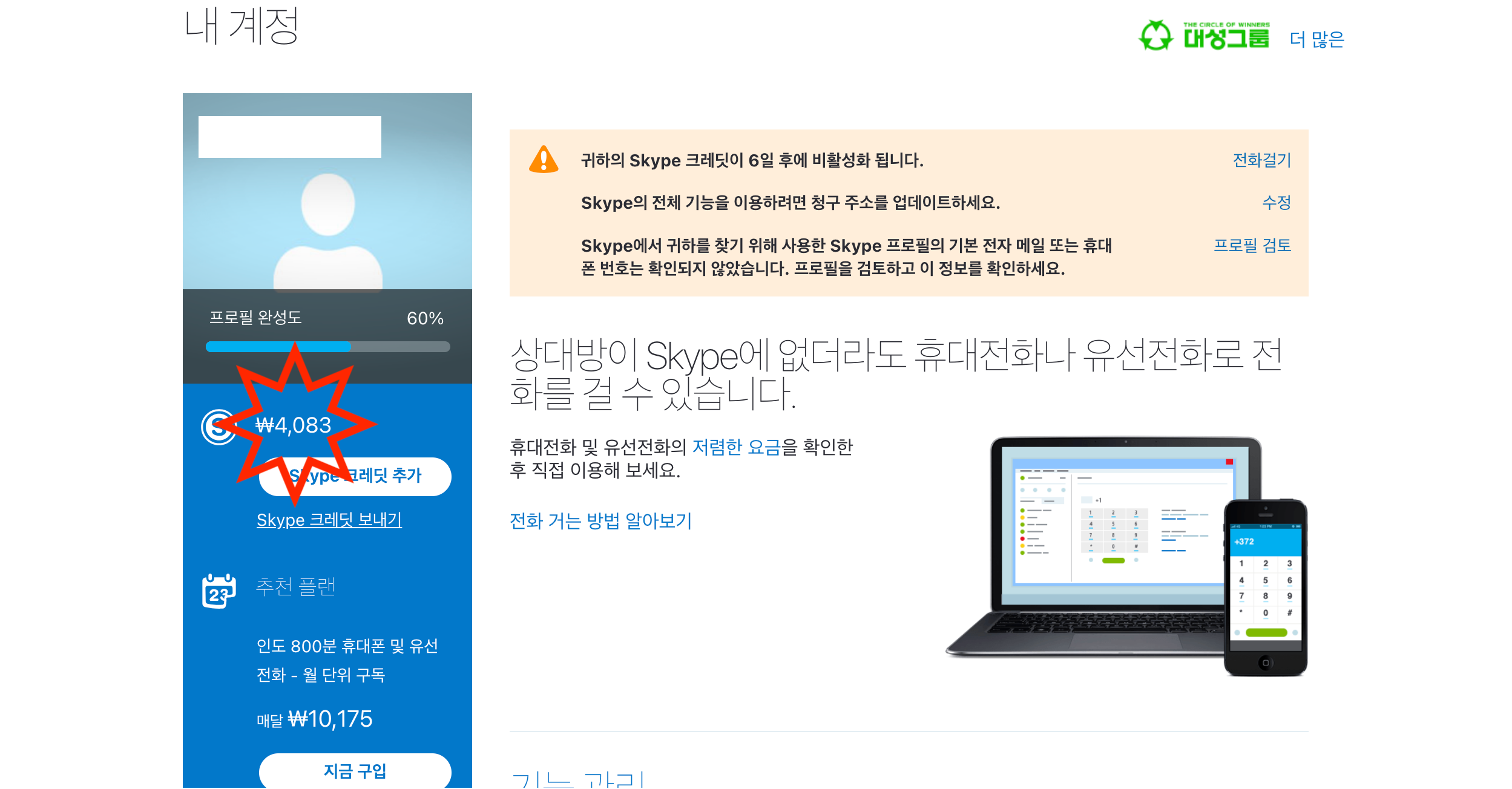 집주인들이랑 연락할 때 skype 크레딧을 구매해서