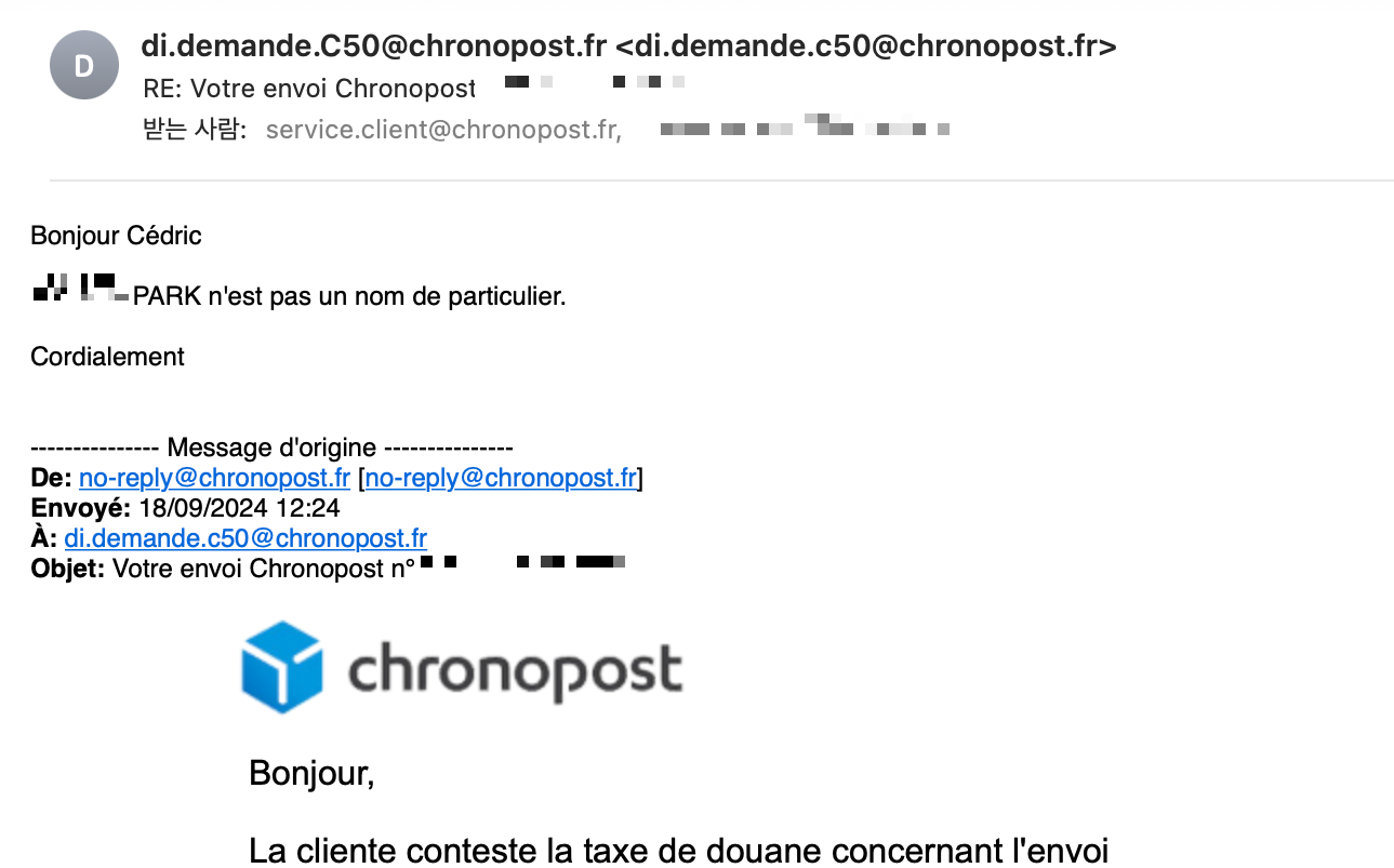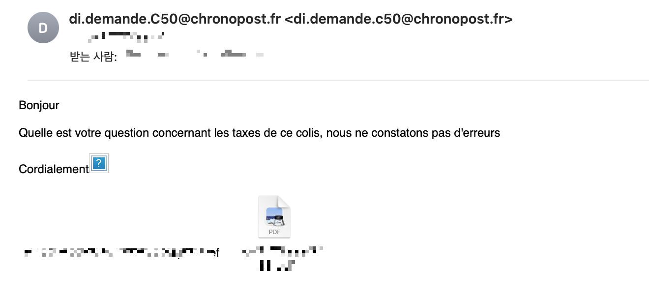 어쨌든 결국에는 douane에 다시 택배를 보내서